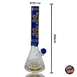 Ce bong en verre se distingue par son impressionnante hauteur de 40 cm et un design exclusif qui mélange des tons bleus et dorés dans des motifs géométriques. Sa base de type ballon assure une stabilité inégalée, tandis que l'épaisseur de la paroi de 7 mm garantit durabilité et résistance. La pièce comprend une tige et un bol de 18,8 mm qui s'intègrent harmonieusement dans le design.