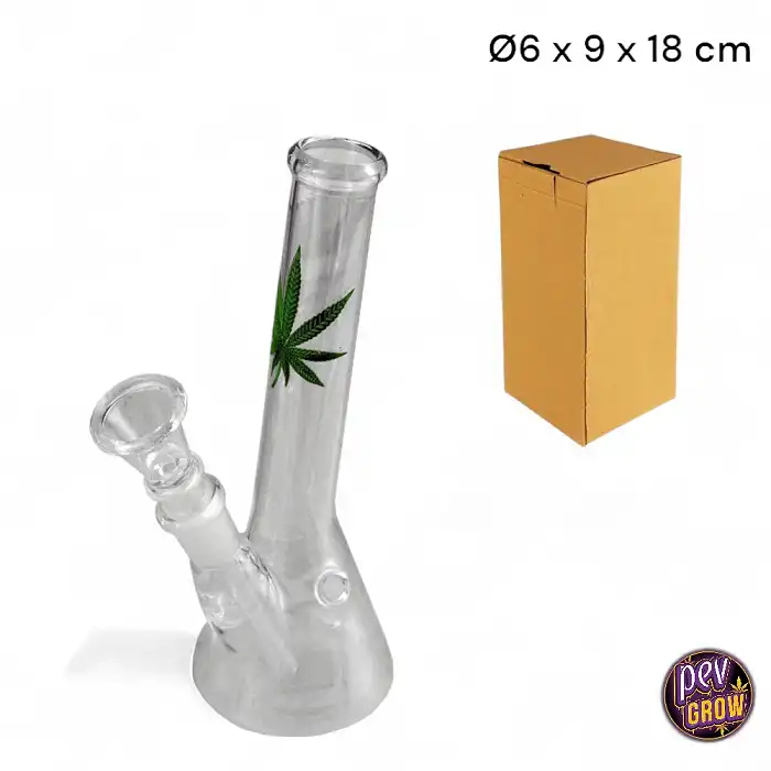 Ce bong se distingue par sa conception pensée pour la simplicité et l'efficacité. Avec une hauteur de 18 cm, il est suffisamment compact pour être discret et facile à manipuler, tout en offrant une chambre de fumée adéquate pour une bonne filtration. Son matériau en verre transparent te permet de visualiser le processus de filtration, ajoutant une dimension visuelle à ton expérience. Le design avec la feuille de cannabis est subtil mais distinctif, parfait pour ceux qui apprécient les détails.