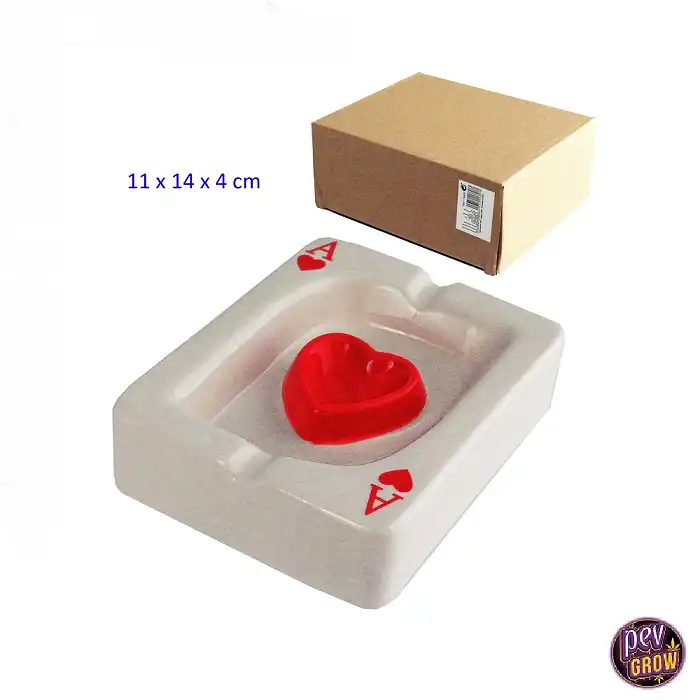 Le Cendrier Céramique Poker est un cendrier de table conçu pour les amateurs de jeux de cartes et de design original. Fabriqué en céramique de haute qualité, il arbore un motif inspiré des cartes de poker, ajoutant une touche ludique et sophistiquée à ton environnement. C'est l'accessoire idéal pour recueillir les cendres et les mégots de manière élégante, que ce soit lors d'une partie entre amis ou pour un usage quotidien.