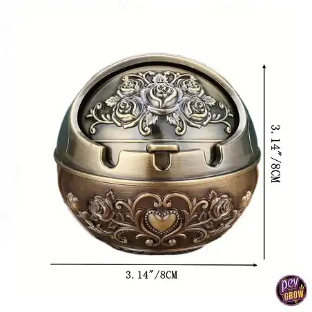 Ne cherche plus ! Si tu souhaites un cendrier qui combine esthétique, fonctionnalité et discrétion, le Cendrier Métal Vintage avec Couvercle est fait pour toi. Chez Pevgrow, nous t'offrons les meilleurs cendriers et accessoires pour fumeurs, avec la garantie de qualité et le service que tu mérites. Ajoute cette pièce unique à ta collection et transforme ton expérience de fumeur.