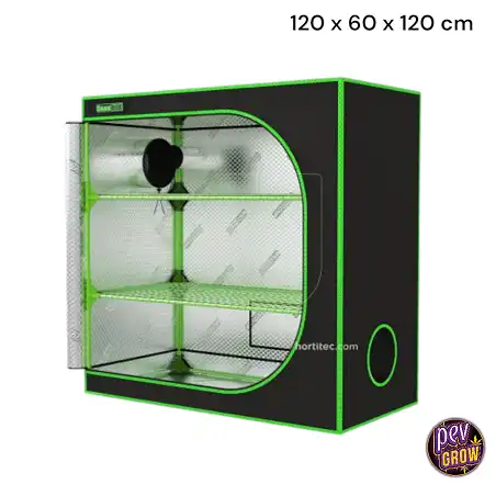 La Chambre de culture Dark Box Propagator est une serre de culture compacte, spécialement conçue pour la propagation de boutures et la germination de graines. Sa structure robuste et légère, dotée d'étagères, permet d'accueillir un grand nombre de jeunes plants dans un espace réduit. C'est l'outil parfait pour créer un microclimat stable, essentiel aux premières étapes de vie de tes plantes.