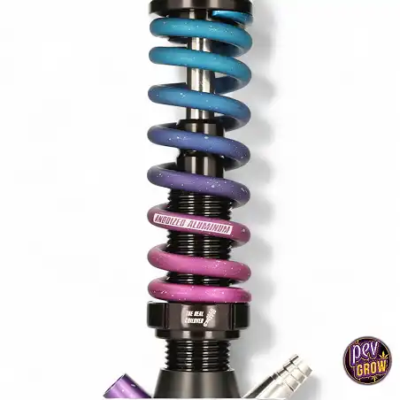 Si tu es un amateur de narguilé à la recherche d'une pièce qui allie esthétique audacieuse et fonctionnalité de pointe, la Chicha Mamay Coilovers Micro V2 est faite pour toi. Inspirée par l'ingénierie automobile, son design intègre un ressort décoratif autour de la colonne de fumée, lui conférant un look distinctif et moderne. Avec ses 40 cm de hauteur, elle est suffisamment compacte pour être transportée facilement, mais assez imposante pour offrir une expérience de fumée riche et satisfaisante.