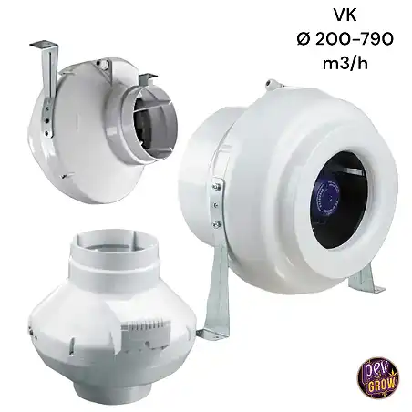 L'extracteur tubulaire VK, disponible, est votre solution pour une ventilation efficace et silencieuse dans les cultures. Avec des modèles allant de Ø 100-250 m^3/h à Ø 315-1325 m^3/h, il s'adapte à tout besoin d'espace, garantissant un environnement idéal pour la croissance de vos plantes.