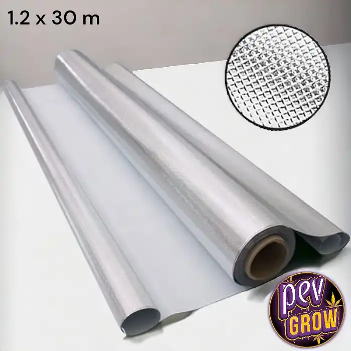 Le plastique réfléchissant Diamant C'est une option exceptionnelle pour augmenter le rendement de vos cultures. Sa structure en stuc en forme de losange garantit une diffusion et une répartition uniforme de la lumière. Bien que plus fin et moins opaque que le Diamond d'origine, ses capacités de réflexion de la lumière et de refroidissement sont comparables.