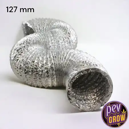 La gaine en aluminium flexible en aluminium flexible d'un diamètre de 127mm s'adapte bien aux espaces de culture de taille modérée comme les chambres de culture jusqu'à 1,5 M2. Il fonctionne efficacement avec des extracteurs gérant des débits d'air allant jusqu'à 250-300m³/h. Il est idéal pour les salles de culture domestiques ou également pour les armoires de séchage du cannabis où un équilibre entre efficacité et gestion efficace du flux d'air est requis. La longueur totale du tube est de 10 mètres, bien qu'il soit présenté plié pour ne pas occuper beaucoup d'espace.