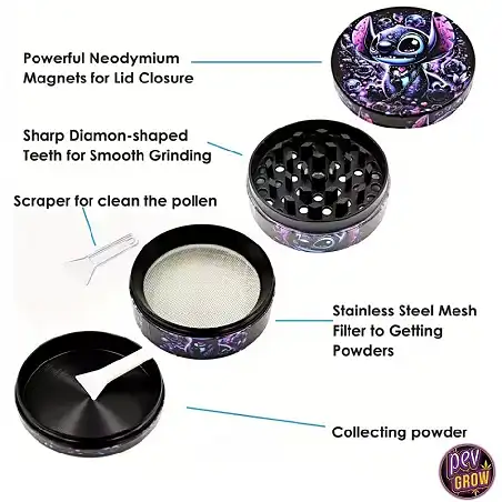 Ne manque pas l'occasion d'acquérir ce grinder unique qui allie l'esprit ludique de Lilo & Stitch à la fonctionnalité d'un broyeur de haute qualité. Chez Pevgrow, nous t'offrons les meilleurs produits aux prix les plus compétitifs, avec la discrétion et la confiance que tu recherches. Fais-toi plaisir ou offre un cadeau original à un ami. Ton nouveau grinder t'attend pour transformer chaque session en un moment magique et efficace.