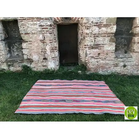 Ce précieux kilim est composé principalement de chanvre naturel, bien que l'on puisse également trouver laine de chèvre dans les broderies, c'est un tapis au design spectaculaire.