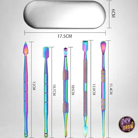 Ne manquez pas l'occasion d'élever vos extractions à un autre niveau avec le Kit Dabbers Acier Rainbow + Tapis en Silicone. Disponible à un prix imbattable sur Pevgrow, où nous vous garantissons toujours la meilleure qualité et attention. Passez votre commande maintenant et expérimentez vos extractions comme jamais auparavant !