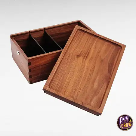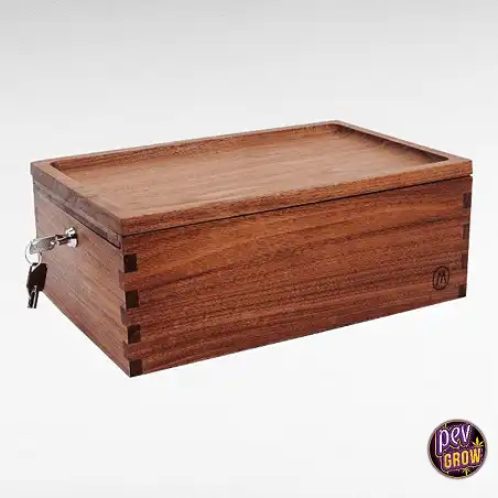 Le Lockbox Marley Natural est une boîte de rangement fabriquée en bois de noyer et en verre, spécialement conçue pour garder weed et accessoires de manière sûre et organisée. Cette boîte combine la beauté naturelle du bois de noyer avec la transparence du verre, permettant une visualisation claire du contenu sans compromettre la sécurité. Elle inclut une fermeture sécurisée avec clé qui protège efficacement vos produits.
