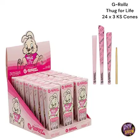 Le papier cones G-Rollz Thug for Life Rose, avec sa tonalité vibrante et l'art de Banksy, offre une expérience de fumage haut de gamme. Authenticité garantie, combustion parfaite et une touche de style sans égal pour les amateurs de cannabis au goût raffiné.