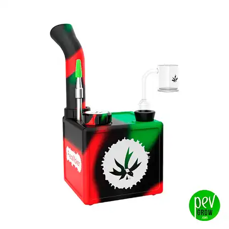 Mais avec la différence que sa forme, lorsqu'il est rangé, le fait ressembler à une petite boîte en silicone semblable à un étui ou à un objet décoratif. Et parce que chez Pevgrow nous comprenons que vous n'avez pas toujours envie de vous expliquer, ce bong est idéal.