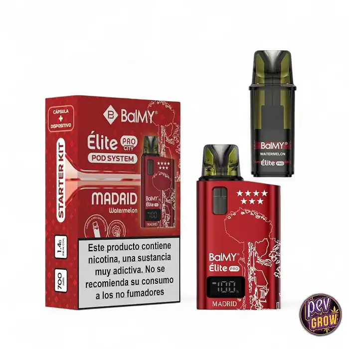 Es-tu prêt à redéfinir ton expérience de vape ? Le Kit Pod Rechargeable Balmy Elite Pro Madrid Edition Pastèque 20mg est arrivé chez Pevgrow pour t'offrir une combinaison parfaite de style, de performance et de saveur. Conçu pour les vapoteurs exigeants comme toi, ce dispositif innovant allie la simplicité d'un pod jetable à la durabilité d'un système rechargeable, le tout avec une touche unique inspirée par l'énergie de Madrid.