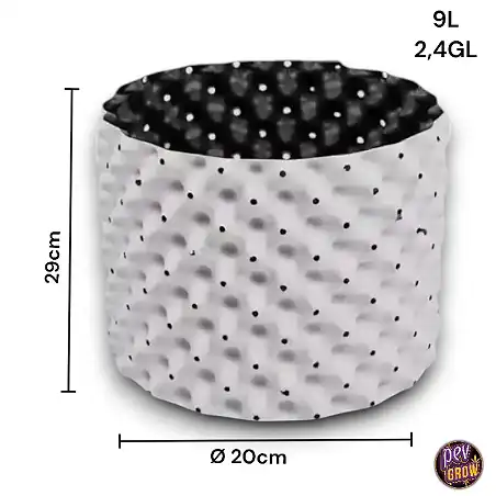 Le Pot Root Plus Rond Blanc 9L de Pevgrow est parfait pour la culture du cannabis, tant en intérieur qu'en extérieur. Avec un design en forme de cône et des trous de ventilation coniques, il assure une excellente circulation de l'air et un bon drainage, évitant l'enchevêtrement des racines et favorisant la taille radiculaire par l'air.