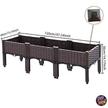 N'attends plus pour créer ton propre espace de culture. Chez Pevgrow, nous t'offrons ce potager urbain élevé en plastique au meilleur prix, avec la garantie de qualité et la discrétion que tu recherches. Profite de la satisfaction de cultiver tes propres aliments frais ou d'embellir ton environnement avec des fleurs éclatantes. C'est le moment de passer à l'action et de transformer ton balcon ou ta terrasse en un véritable jardin productif et esthétique.