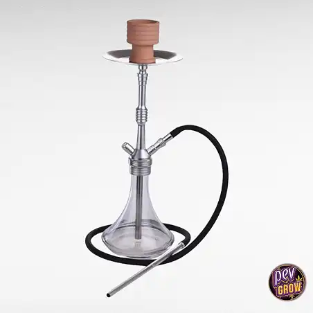 Ce modèle se distingue par son élégant fini argenté et sa structure robuste en métal. Il dispose d'une base en verre transparent qui non seulement ajoute une touche de sophistication, mais permet également de surveiller l'eau et les bulles créées pendant le fumage. De plus, elle est équipée d'un tuyau en silicone de haute qualité et d'un embout en métal, tous deux conçus pour durer et fournir une expérience utilisateur exceptionnelle.