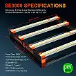 La lampe de culture Spider Farmer se3000 est une structure LED à 4 barres qui mesure 61 x 57,5 x 9,4 cm, et pèse 7,16 kilos, une taille idéale pour être installée dans des tentes de culture de 80 x 80 cm et plus. Il est suffisamment puissant pour éclairer jusqu'à 90 x 90 cm pendant la phase de croissance végétative, et jusqu'à 70 x 70 cm pendant la phase de floraison des plantes. Entre les 4 barres, il dispose d'un total de 896 diodes Samsung LM301B, il est super-silencieux grâce à son système de dissipation passive, et il est réglable en puissance pour pouvoir être ajusté à tout moment de la culture.
