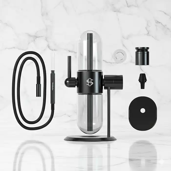 Un appareil qui fonctionne incroyablement bien et qui vous offre une expérience unique. Son mécanisme fonctionne par gravité et fait circuler la vapeur d'eau ou la fumée vers l'embout, ce qui vous permet de profiter de ses effets.