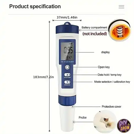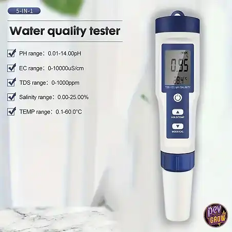 N'attends plus pour prendre le contrôle total de la qualité de ton eau. Chez Pevgrow, nous t'offrons ce testeur digital 5-en-1 à un prix imbattable. Assure la réussite de tes cultures et la santé de tes environnements aquatiques avec un outil fiable, précis et facile à utiliser. Fais confiance à notre expertise et rejoins la communauté de clients satisfaits qui ont déjà choisi la qualité Pevgrow.