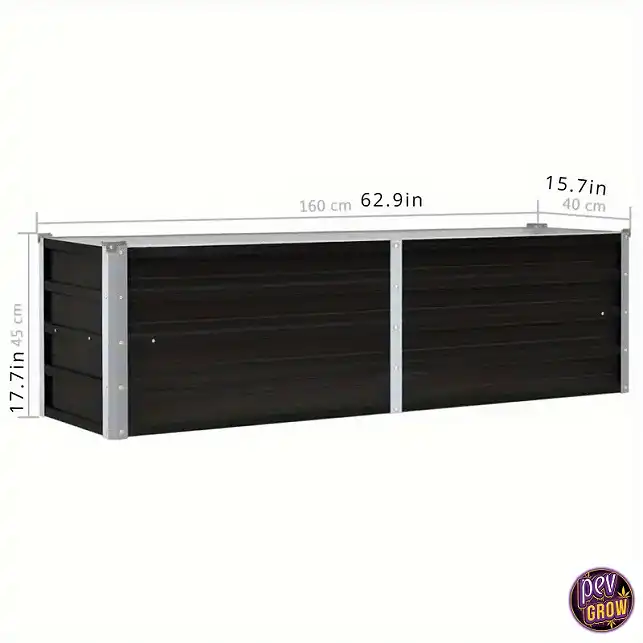 A Cama Elevada Rectangular de Aceiro Galvanizado (160x40x45cm) é a mellora definitiva para o teu espazo exterior de cultivo, deseñada para darche control total sobre o substrato mentres engade un aspecto elegante e industrial ao teu terra. Esta estrutura robusta permite cultivar un volume considerable de plantas sen necesidade de escavar o chan, ofrecendo o equilibrio perfecto entre instalación profesional e atractivo estético para os teus proxectos de horta urbana.