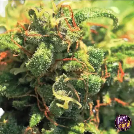 Esta non é só unha planta bonita; é un cultivo fiábel e gratificante. Como semente feminizada fotoperiódica, garante plantas femininas, eliminando a incertidume e o estrés de ter que identificar machos. A súa dominancia sativa (60% Sativa, 40% Indica) promove unha estrutura manexábel en interior, pero que pode expresar todo o seu potencial arbusto en exterior. Os cultivadores informan que é sorprendentemente resistente a problemas comúns como o míldiu, o que a converte nunha boa opción incluso se aínda estás perfeccionando as túas habilidades. A verdadeira magia ocorre arredor da semana 6 da floración, cando as flores desenvolven unha impresionante gama de cores e quedan cubertas de tricomas dourados e pegajosos.