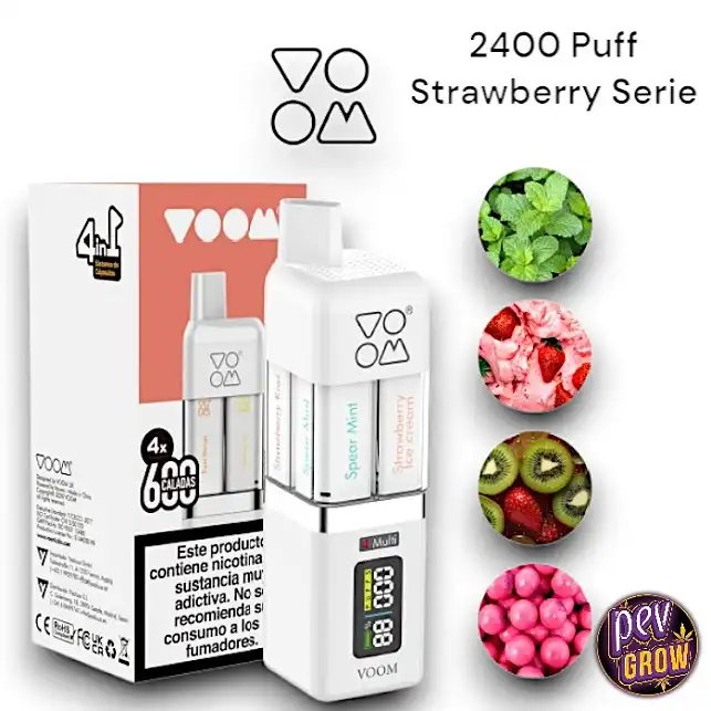 O VOOM 2400 Multi Pod Kit - Strawberry Series supón unha revolución para os vapeadores que non se conforman cun só sabor ou cunha vida útil curta. Este dispositivo innovador non é un vaper máis; é unha estación de sabor completa no teu peto que combina a comodidade dun vaper desbotable coa sustentabilidade dun sistema recargable, ofrecéndoche 4 experiencias de amorodo distintas nunha única e elegante unidade.