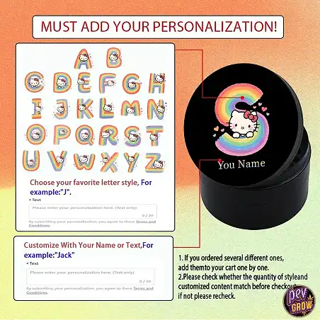 Este grinder personalizado no solo es atractivo a la vista, sino que también está construido para durar. Fabricado con una robusta aleación de zinc, resistirá el paso del tiempo y el uso continuado. Su tamaño compacto, de aproximadamente 50mm de diámetro, lo hace perfectamente portátil, ideal para llevarlo contigo a cualquier parte con total discreción. El acabado blanco y el detalle de Hello Kitty lo convierten en un objeto de deseo para coleccionistas y amantes de los diseños originales. Es el regalo perfecto para sorprender a ese amigo especial o para darte un capricho que refleje tu estilo único.