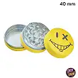 Este grinder destaca por su construcción en metal robusto y su diseño compacto de 40 mm de diámetro. Cada pieza está meticulosamente diseñada: desde los dientes afilados que aseguran un triturado fino hasta la malla que filtra el polen. Además, los emojis en la tapa hacen de cada pieza un objeto único y personal.