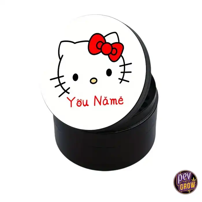 Fabricado con una robusta aleación, este grinder no solo es resistente y duradero, sino que también es ligero y portátil, perfecto para llevarlo contigo a cualquier parte. Su tamaño, disponible entre 50mm y 63mm, lo hace cómodo de manejar y guardar. El icónico diseño de Hello Kitty en rojo y blanco le da un toque divertido y original, diferenciándote del resto. Además, la posibilidad de personalizarlo con un texto lo convierte en un objeto verdaderamente único, un detalle que no pasará desapercibido entre tus amigos.