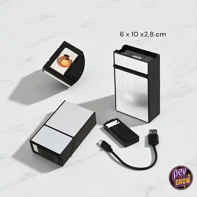 Hagyj fel a megtört dobozokkal és a hiányzó gyújtókkal. A fém cigaretta tárca töltődő öngyújtóval végleges megoldást jelent, amely erős védelmet és azonnali tüzet kínál egy elegáns 6x10 cm-es eszközben, amellyel napról napra fejlesztheted a hordozható kellékeidet.