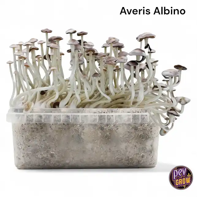 Az Averis Albino egy ritka, látványos változata a klasszikus Psilocybe cubensis-nek – híres áttetsző fehér kalapjáról és törzséről, amely kezeléskor halvány kék árnyalatot mutat. De nemcsak a megjelenése miatt kedvelt: gyors kolonizációval és ellenálló képességgel rendelkezik, így ideális kezdők számára. Más, érzékeny fajtákhoz képest, amelyek tökéletes páratartalmat vagy hőmérsékletet igényelnek, az Averis Albino szobahőmérsékleten is jól fejlődik, és gyorsan reagál az egyszerű gyümölcsöztetési technikákra. Emellett sűrű, csoportos termést hoz, így maximális hozamot érhet el egyetlen készletből.