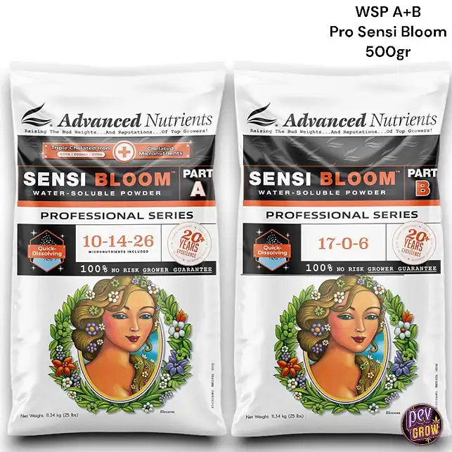 Az Advanced Nutrients Sensi Bloom A+B Pro egy kétalkotós, vízoldható por, amelyet kifejezetten a genetikai potenciál maximális kibontakoztatására fejlesztettek a virágzás intenzív szakaszában. Ez nem egyszerű virágzásfokozó: több mint két évtizedes, kizárólagosan a kannabiszra összpontosító kutatás eredménye, amely a 'Shift'-et célozza meg – a növények által a virágzás alatt igényelt tápanyagarányok kritikus átalakulását, amely a legnehezebb, leggyantásabb termést eredményezi.