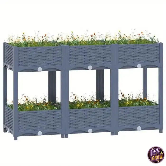 Este huerto urbano es una estructura diseñada para el cultivo de plantas en espacios reducidos, como balcones, terrazas o pequeños patios. Fabricado en polipropileno de alta calidad, un material conocido por su durabilidad y resistencia a las inclemencias del tiempo, te asegura una larga vida útil. Su diseño elevado no solo añade un toque estético moderno, sino que también te permite trabajar de pie, evitando molestias en la espalda y rodillas. Es la opción ideal para Alex, que valora la comodidad y la funcionalidad en su día a día.