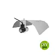 Il riflettore Lumi include un portalampada regolabile, compatibile con tutte le lampadine al sodio ad alta pressione, quelle a ioduri metallici o con le lampadine a basso consumo.