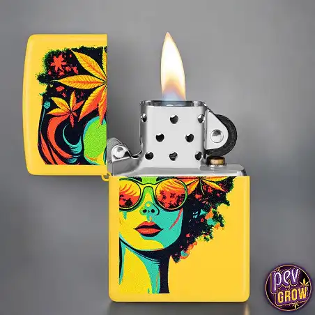 Immagina una finitura metallica brillante, adornata con la figura iconica di una donna che cattura l'essenza cannabica. Il suo design artistico non è solo accattivante, ma assicura il prestigio Zippo, il che significa che godrai della sua compagnia per molto tempo. È il tocco perfetto per la tua collezione di parafernalia.