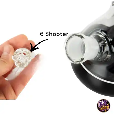 Inoltre, il suo "6 shooter chillum" agisce come un diffusore avanzato, disperdendo il fumo in molteplici direzioni e migliorando la filtrazione. Questo risulta in un fumo più fresco e morbido, ideale per chi cerca un'esperienza più piacevole.