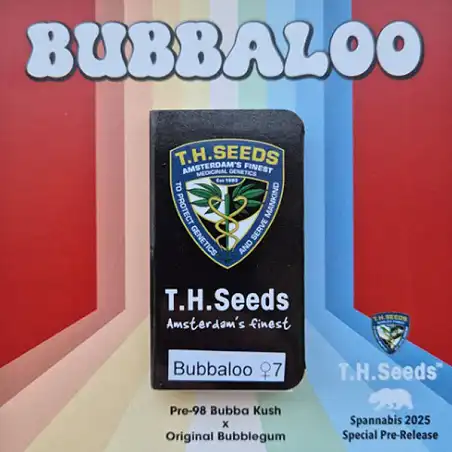 Bubbaloo è una varietà di cannabis femminizzata creata da T.H. Seeds, un banco di semi rinomato per le sue genetiche di alta qualità. Questa edizione limitata è il risultato dell'unione tra la leggendaria Pre98 Bubba Kush e l'Original Bubblegum, due ceppi iconici che si fondono per offrire un profilo aromatico e un effetto indimenticabili. È una pianta a predominanza Indica (65% Indica, 35% Sativa) che cresce con una struttura compatta e robusta, ideale per diversi tipi di coltivazione.