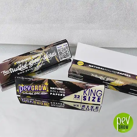 La carta da arrotolare Pevgrow è di taglia King Size, che in Spagna e in altri paesi è conosciuta con il nome di "carta di L", cioè della lunghezza. È a bassa porosità, il che permette una combustione lenta e una combustione omogenea, e nel caso di non fumare per un minuto smette di consumarsi e si spegne da solo. Ora hai a disposizione la carta da fumo merchandising del tuo marchio preferito ad un prezzo imbattibile, per goderti un fumo delizioso e uniforme senza inalare sostanze tossiche.