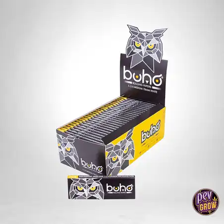 La Cartina per fumare Buho Classic 1 ¼ è l'opzione ideale per chi apprezza la qualità e il naturale in ogni boccata. Prodotta in Spagna, questa carta viene sbiancata attraverso un processo ecologico, senza cloro né additivi chimici. La sua dimensione di 78 × 44 mm è perfetta per preparare sigarette che si adattino al tuo stile.