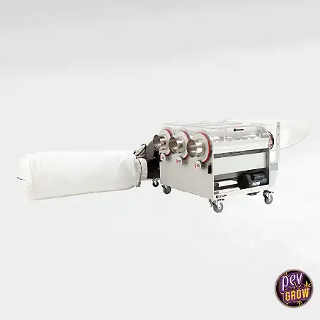 Il suo design include un tramoggia di grande capacità, un potente sistema di aspirazione per la raccolta delle foglie e un sistema di filtraggio del kief a tripla borsa. Inoltre, l'aggiornamento a ciotole rivestite in Quantanium riduce l'adesione dei tricomi e semplifica la pulizia, ottimizzando ancora di più il processo di raccolta.