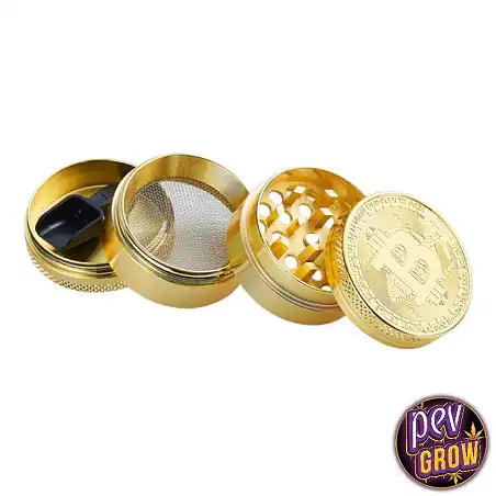 Il design del Grinder Alluminio Bitcoin 40 mm è un connubio tra modernità e praticità. Con una finitura in alluminio e l'emblematico logo di Bitcoin inciso sulla sua superficie, questo grinder metallico è un pezzo da collezione che non passa inosservato.