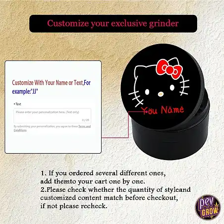 Il Grinder Hello Kitty è progettato per offrirti il massimo. Le sue 4 parti includono un coperchio magnetico per una chiusura sicura, denti affilati per una macinazione efficiente, un vano per le erbe macinate e un pratico raccoglitore di polline con setaccio. Le dimensioni, tra 50mm e 63mm, lo rendono portatile e comodo da usare ovunque tu sia. La lega di alta qualità garantisce che questo grinder resista all'usura del tempo, mantenendo intatte le sue prestazioni e il suo aspetto vivace.