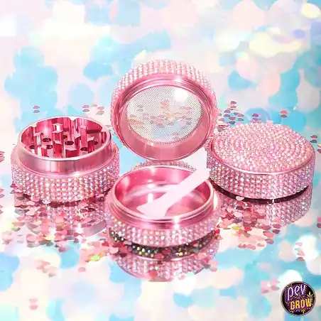 Questo grinder è fantastico! Il colore rosa è stupendo e i brillanti lo rendono davvero speciale. Macina le mie erbe alla perfezione e la qualità è ottima.
