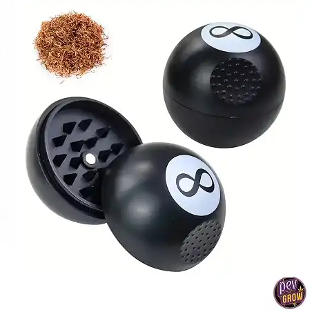 Il Grinder Palla da Biliardo 8 è un accessorio indispensabile per gli amanti delle erbe, progettato per sminuzzare il materiale vegetale in pezzi di dimensioni e consistenza uniformi. Con un diametro di 56mm, questo grinder compatto si distingue per il suo design accattivante che riproduce fedelmente la famosa palla numero 8 del biliardo. È composto da due parti che si uniscono saldamente, spesso tramite un magnete, garantendo una chiusura sicura e un'esperienza d'uso ottimale.