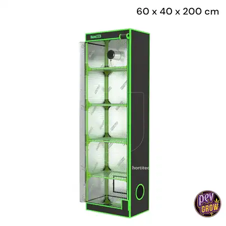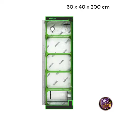 Questo invernadero si distingue per la sua robustezza e la sua capacità di creare un microclima perfetto. Le sue dimensioni di 120x40x200 cm offrono ampio spazio verticale, ideale per diverse fasi di crescita. È progettato per permettere l'integrazione di accessori essenziali come estrattori, umidificatori o riscaldatori d'aria, garantendo un controllo totale su temperatura e umidità, fattori chiave per la germinazione e la propagazione.