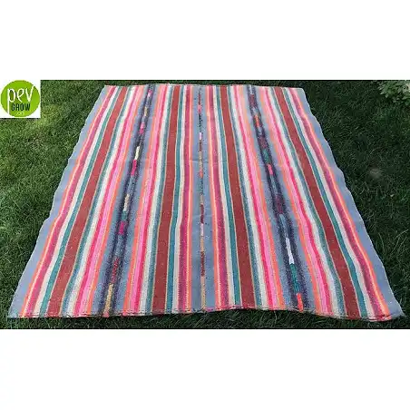 Questo prezioso kilim è realizzato principalmente con canapa naturale, anche se nei ricami possiamo trovare anche lana di capra , questo è un tappeto dal design spettacolare.