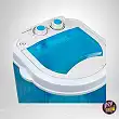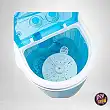 La Lavatrice Bubblextractor ha un design compatto che ricorda una lavatrice tradizionale, ma in dimensioni ridotte. Dispone di due tubi: uno per l'approvvigionamento di acqua pulita e fredda, e un altro per il drenaggio. Inoltre, include un temporizzatore che ti permette di programmare il tempo di lavaggio, evitando di dover monitorare il processo.