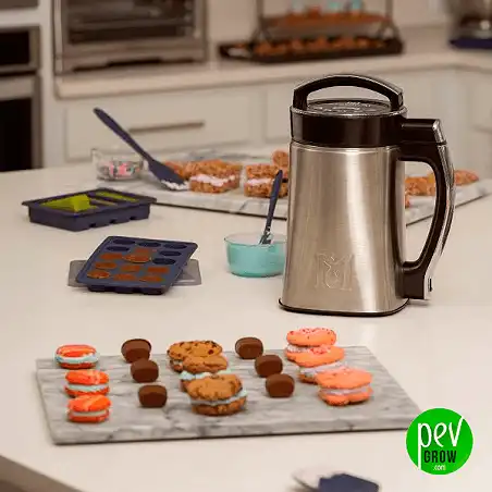 Questo elettrodomestico innovativo combina tre elementi essenziali in cucina: un frullatore a immersione, un'unità di riscaldamento e un termostato digitale.