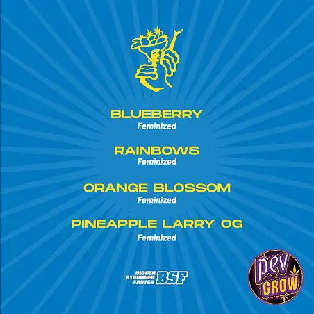 La finestra di raccolta di queste varietà è variata, il che ti permette di godere di una stagione di raccolta estesa. Blueberry e Rainbows sono generalmente pronte per la raccolta verso fine settembre, mentre Orange Blossom e Pineapple Larry OG si protraggono fino a ottobre. È importante prestare attenzione ai segni di maturità nei tricomi per raccogliere nel momento ottimale e ottenere il massimo sapore e potenza.