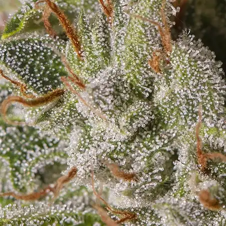 Già a prima vista, Old Toby ruba la scena. La sua forma, simile a un albero di Natale, mostra una pianta forte e ramificata con una imponente gemma centrale. Durante la fioritura, vedrai come si ricopre di gemme dense e lucide di resina. Il suo intenso colore verde scuro e lo strato di tricomi che la avvolge la rendono non solo un capolavoro della natura, ma anche un'opzione resistente a muffe e parassiti, perfetta per la coltivazione all'aperto.