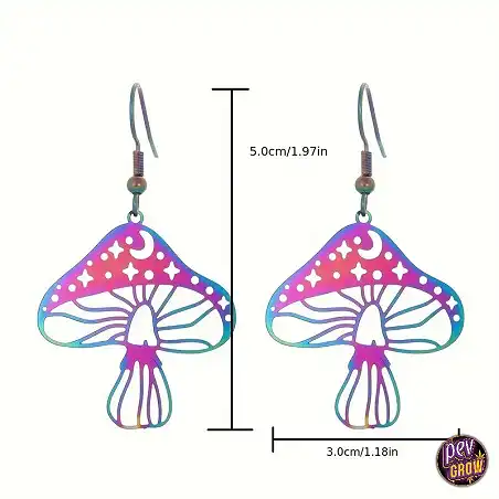 Il design cavo di questi orecchini a fungo aggiunge un elemento di leggerezza e raffinatezza, mentre i colori vivaci li rendono un vero e proprio punto focale. Ogni dettaglio è curato per riflettere la forma naturale e affascinante dei funghi, trasformando un semplice accessorio in un'opera d'arte da indossare. Che tu sia un appassionato di funghi magici o semplicemente ami gli accessori che esprimono creatività, questi orecchini sono pensati per te. Si abbinano perfettamente a uno stile bohémien, hippie o semplicemente a chi ama distinguersi con un tocco di estrosità.